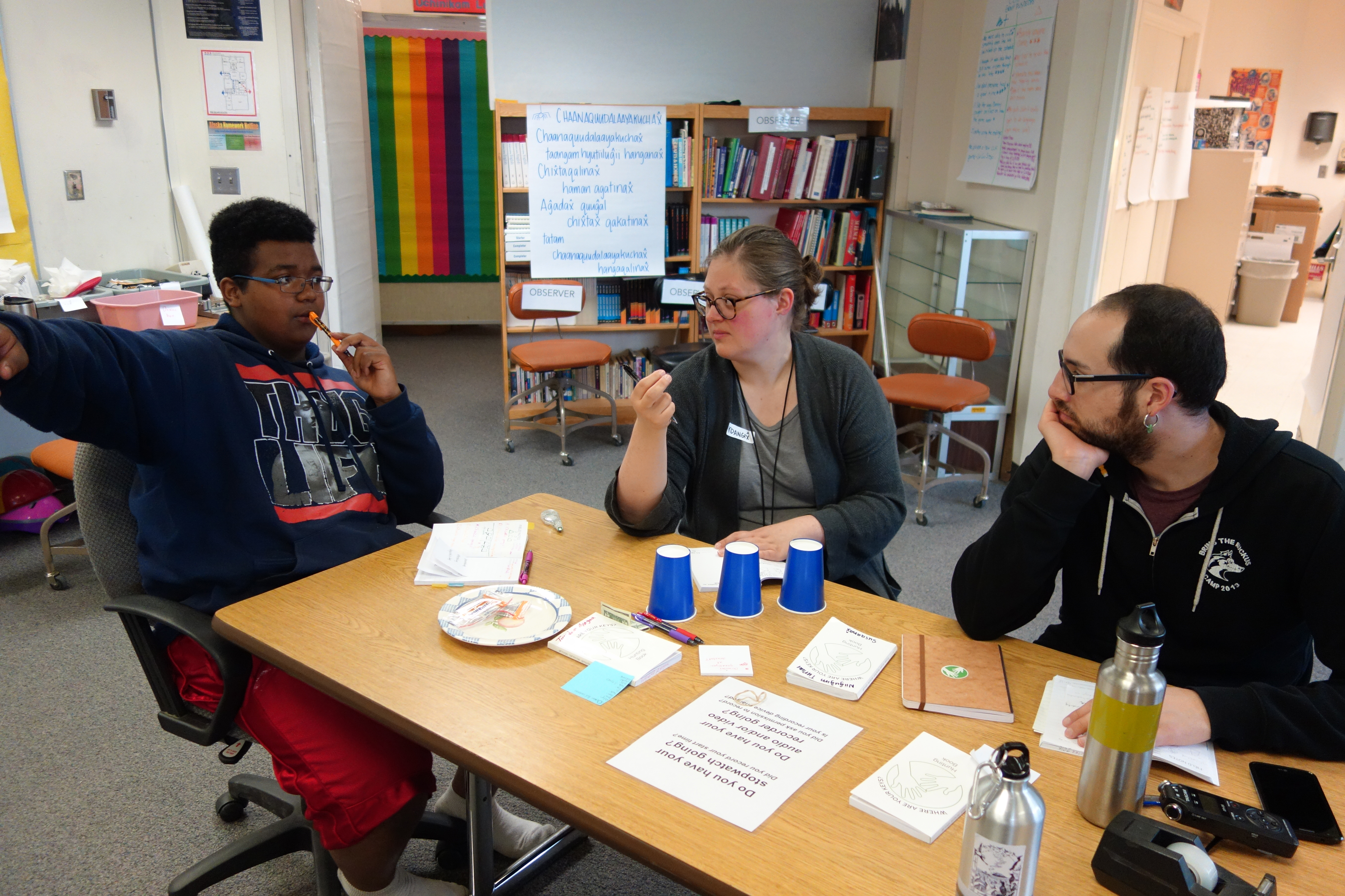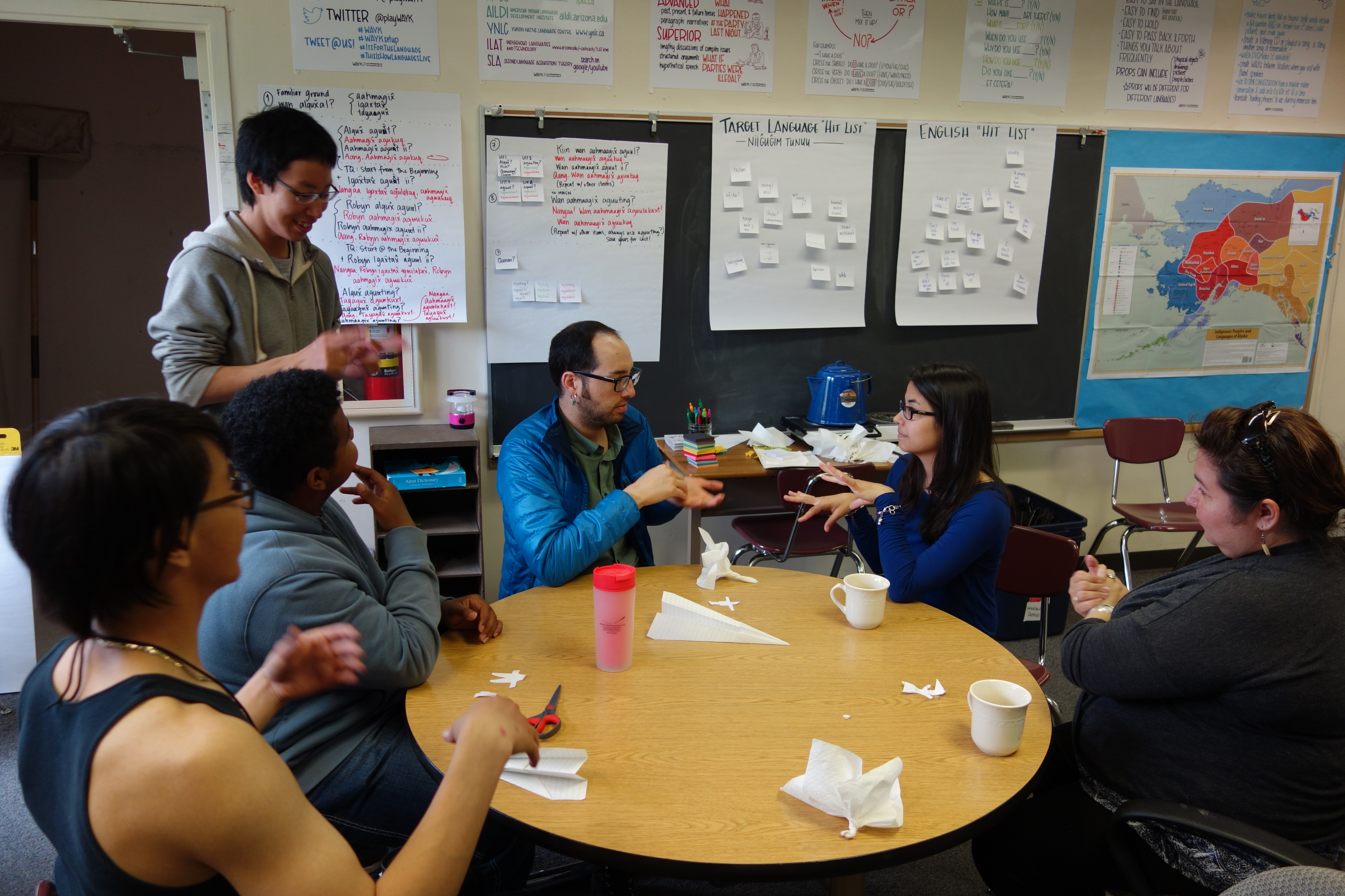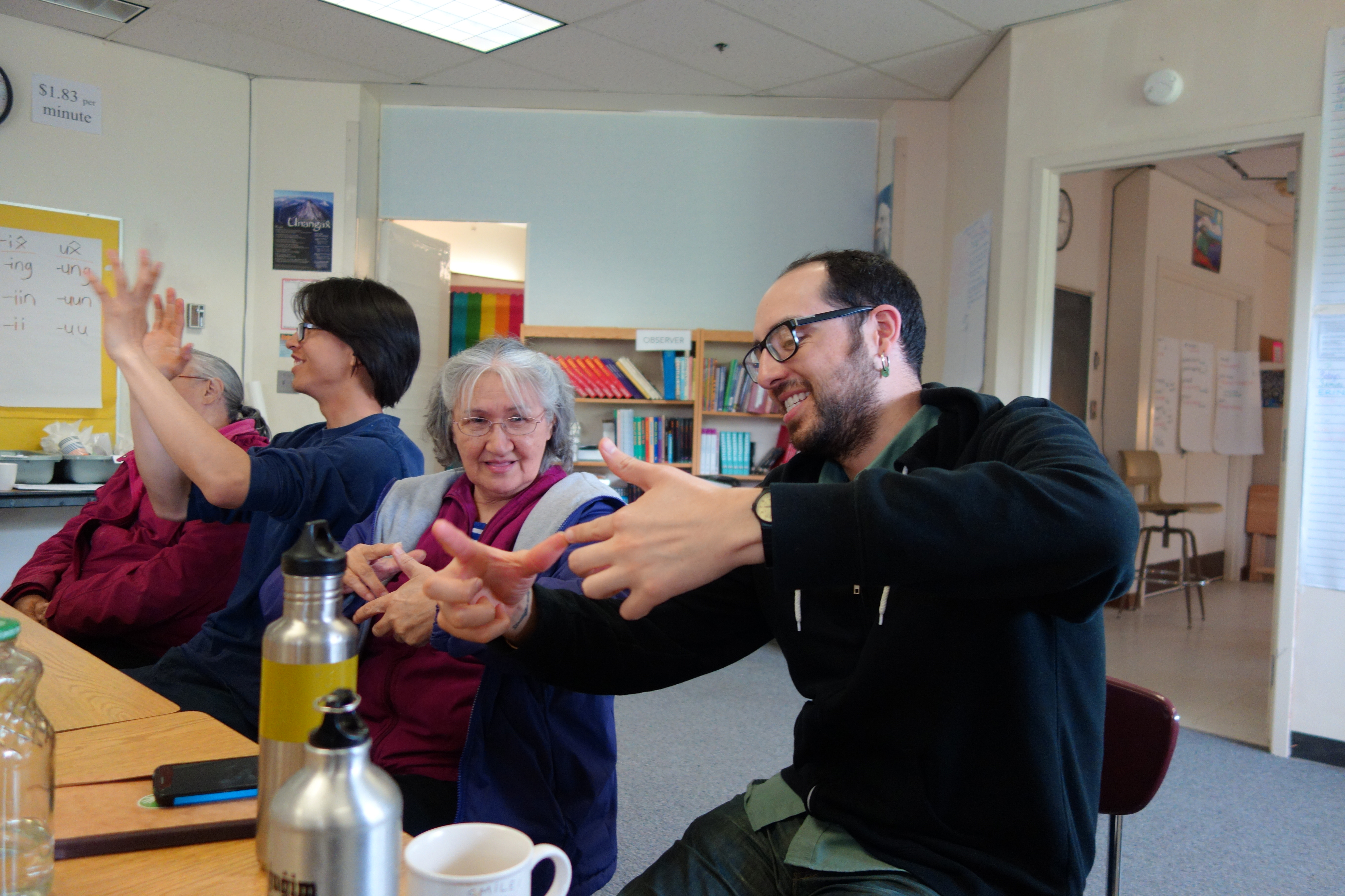 Speaking of community, something else that’s been great to take part in is the development and carrying out of what is now a weekly event – community language night. It takes place every Thursday evening and runs for about an hour and a half after all is said and done. Having the opportunity to practice what we work on every day with new language learners is not only fun, but has us honing our skills and language teachers. It was only several weeks ago that I knew nothing about Niiĝuĝim Tunuu and now I’m helping teach it!