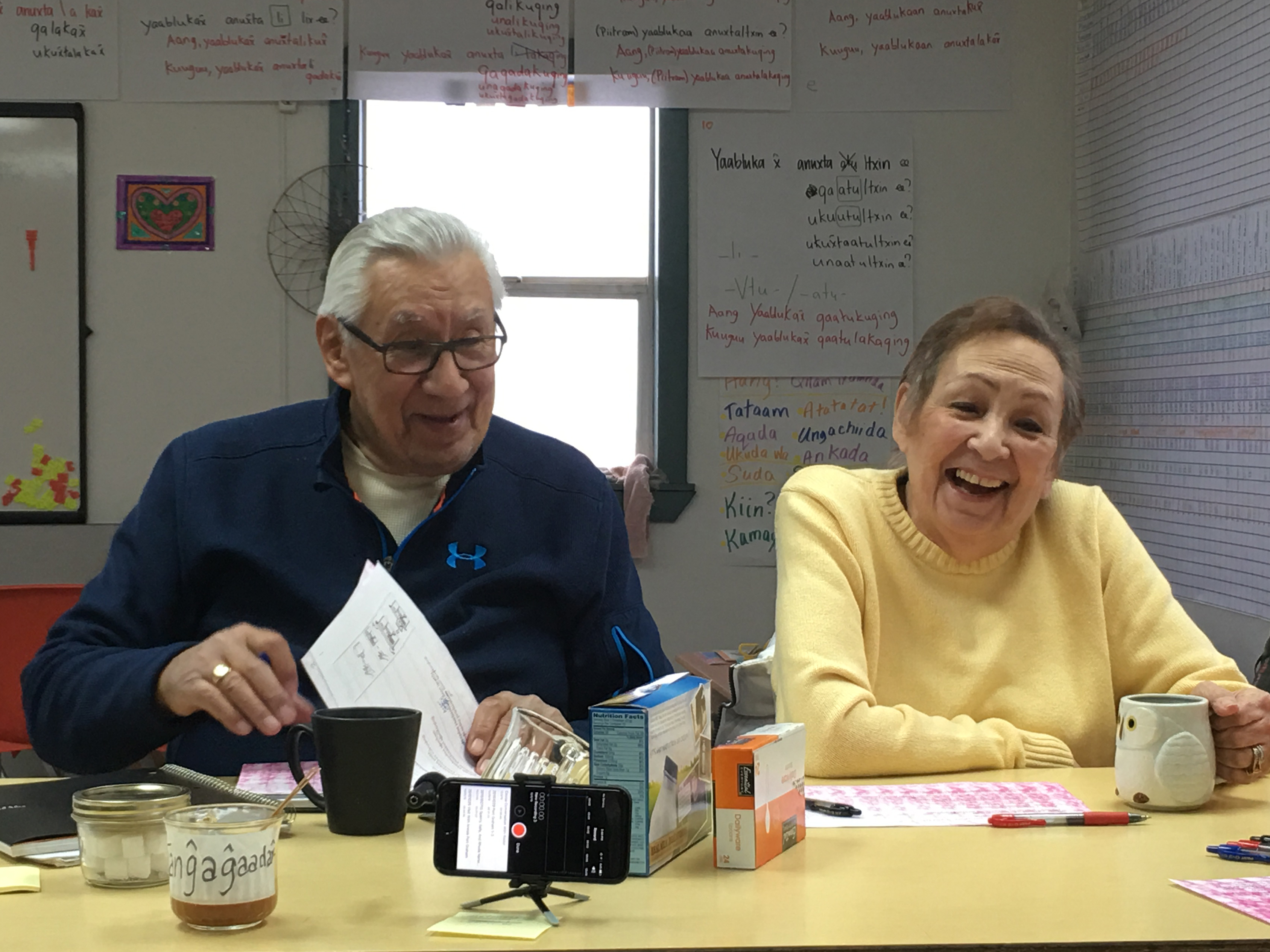 The WAYK team returned to St. Paul, Alaska for our first follow up visit after the 2015 Summer Intensive, which focused on the St. Paul and St. George dialects of Unangam Tunuu. Our visits to St. Paul are part of a larger Unangam Tunuu project, sponsered by APIA (the Aleutian Pribilof Islands Association) and funded in part by ANA (the Administration for Native Americans). The St. Paul language team is also currently working on another project for just their community, funded by ANEP (the Alaska Native Education Program), that will increase and enhance the presence of Unangam Tunuu in the local school.